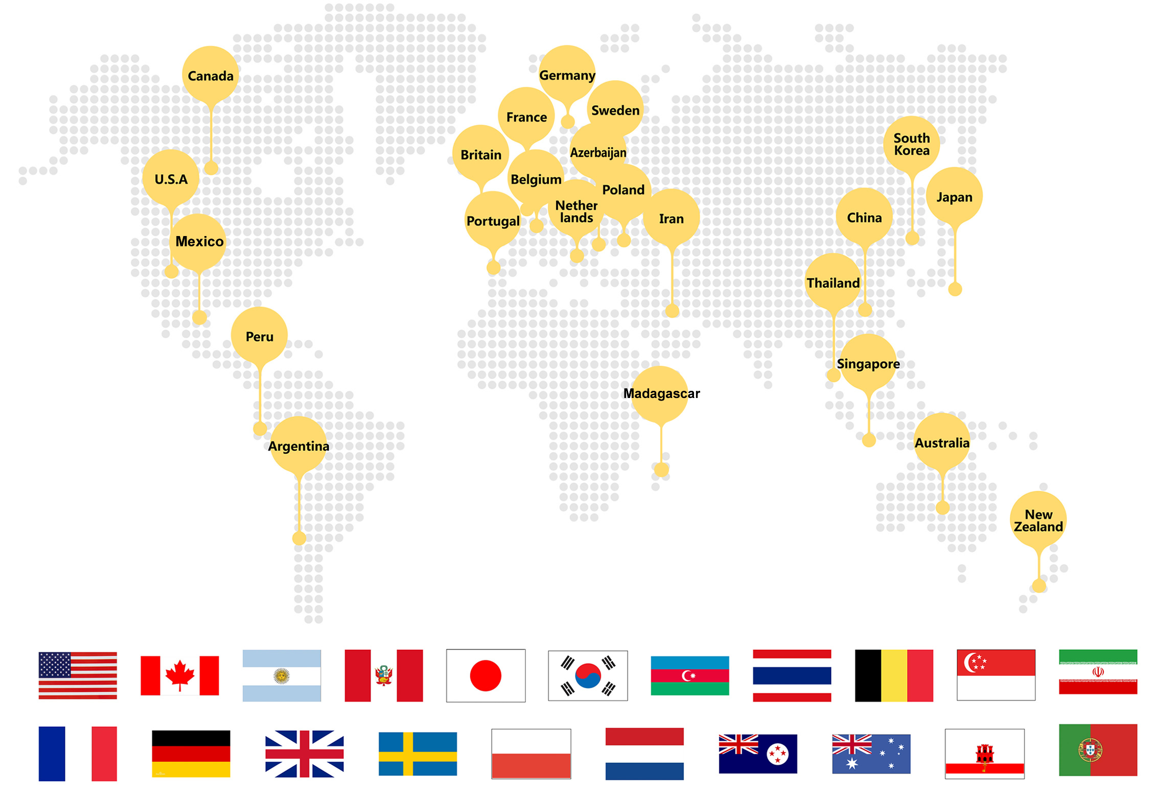 France, Belgium, Portugal, Netherlands, Poland, Sweden, UK, Gibraltar, Australia, New Zealand, Madagascar, and other parts of the world.